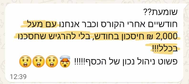זה הרבה יותר מסתם קורס על כסף - זו מתנה! החזרת לי את השלווה!